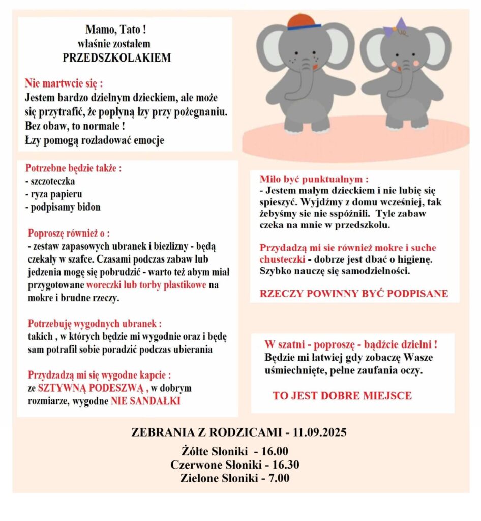 Przedszkole Zebranie z rodzicami Posted on 16 lipca, 202516 lipca, 2025 by admin 16 Lip Continue reading →